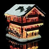 ▷▷▷▷▷ Christmas Snow Village Fiber Optic House - Log Cabin Chalet Inn Collectible | Collectible Buildings
